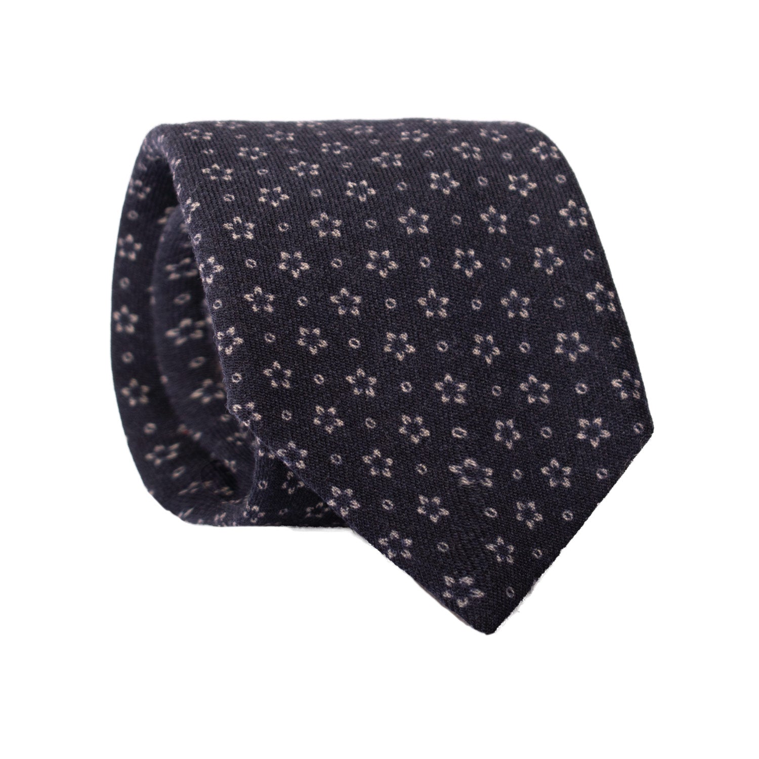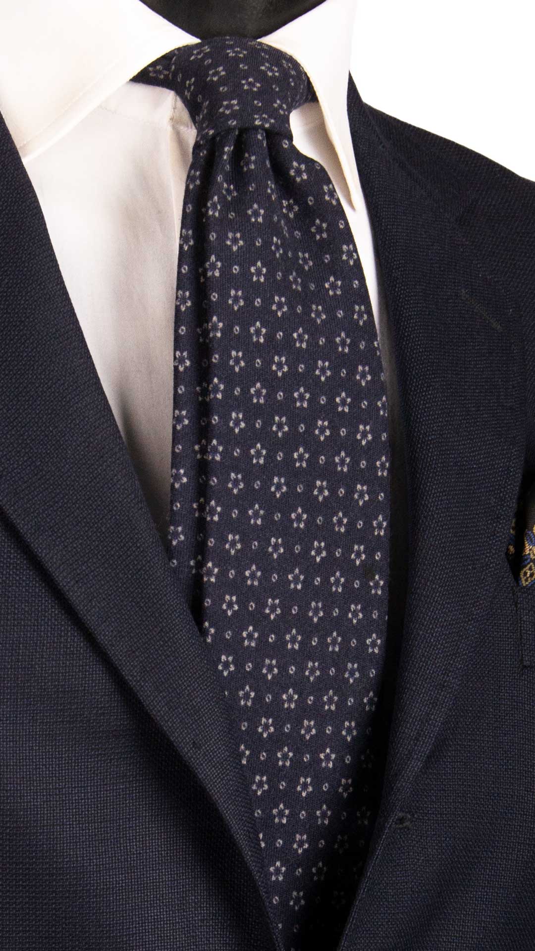 Cravatta di Lana Blu a Fiori Grigi L1006