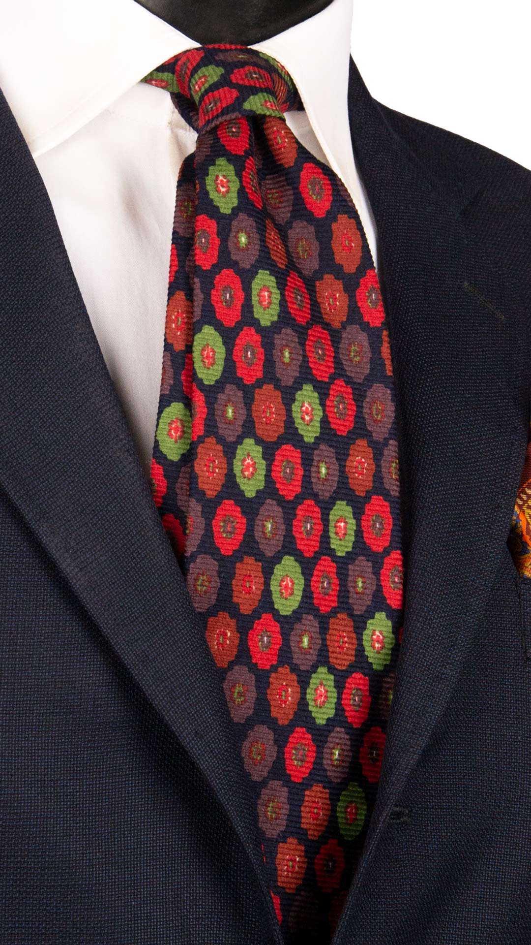 Cravatta in Lana Seta Nera a Fiori Multicolor L946