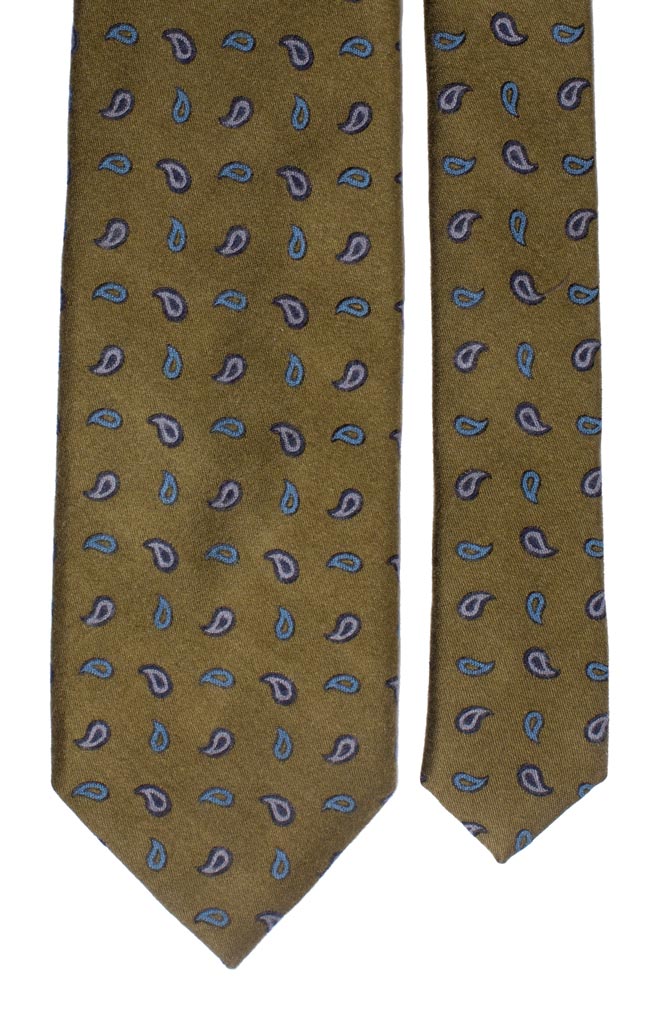 Cravatta di Lana Verde Paisley Grigio Chiaro Blu Azzurro L761