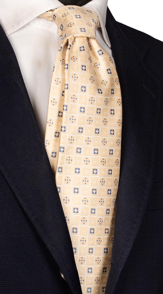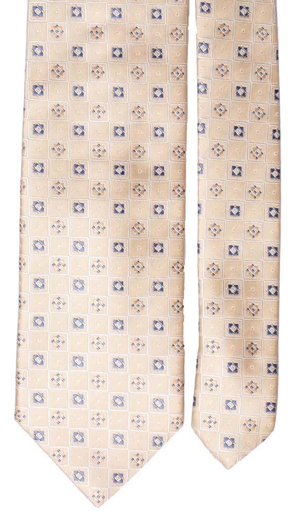 Cravatta di Seta Beige Fantasia Blu Avio 1400