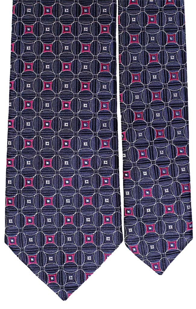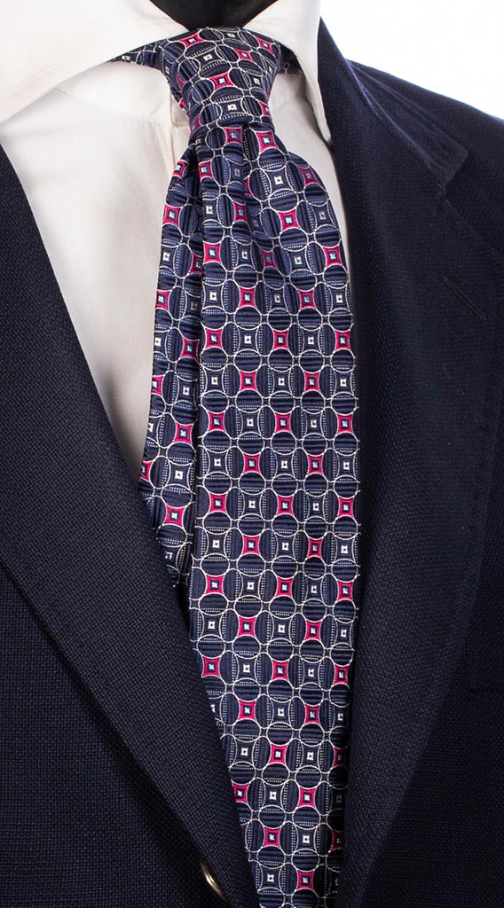 Cravatta di Seta Blu Avio Fantasia Fucsia Bianco Celeste AN4797