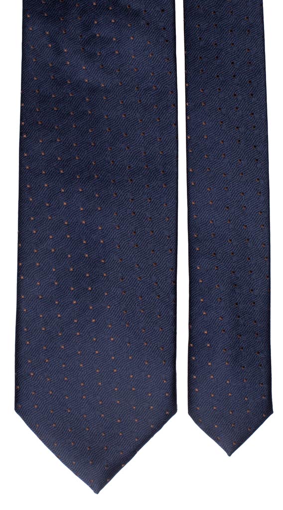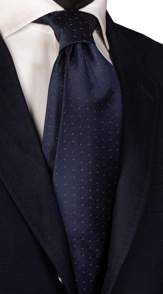 Cravatta di Seta Blu Fantasia Marrone 1447