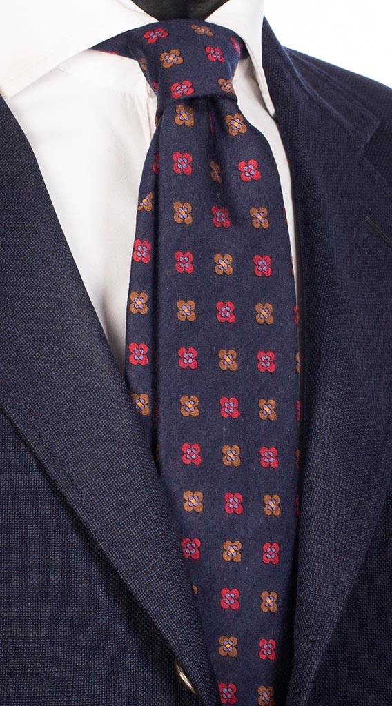 Cravatta di Seta Blu Fantasia Marrone Bordeaux Viola Arancione AN5240