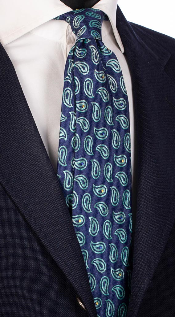 Cravatta di Seta Blu Navy Paisley Verde Blu Giallo Viola 5249
