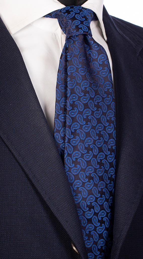 Cravatta di Seta Blu Paisley Tono su Tono Bluette 5495