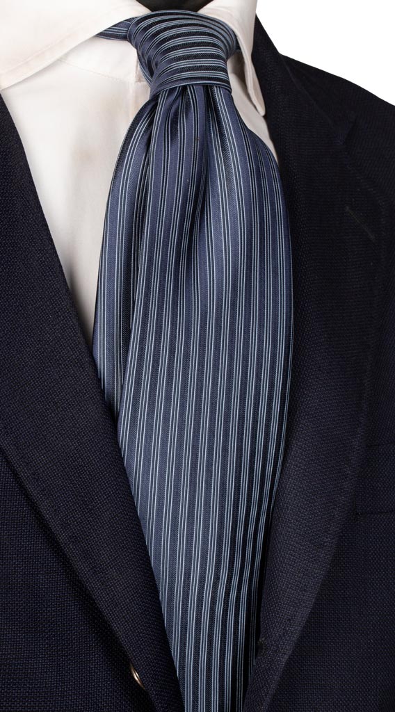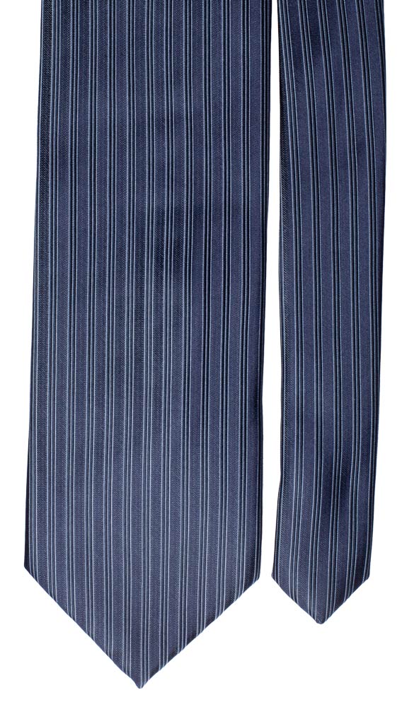 Cravatta di Seta Blu Righe Verticali Celeste 1025