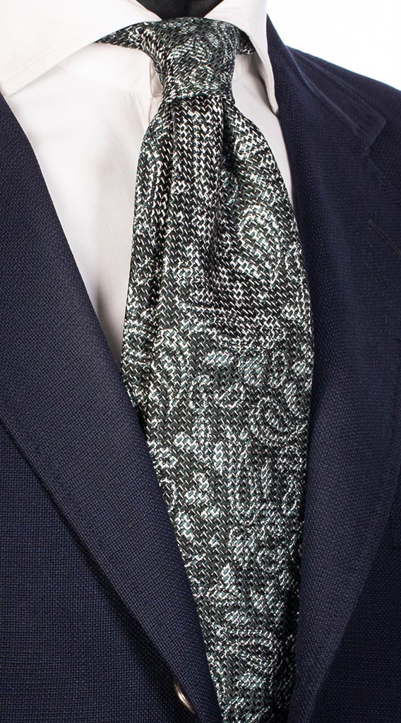 Cravatta di Seta Fantasia Verde Blu Bianca 5421