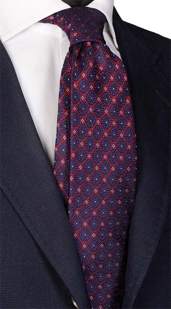 Cravatta di Seta Jaspé Rossa Fantasia Blu Celeste J15