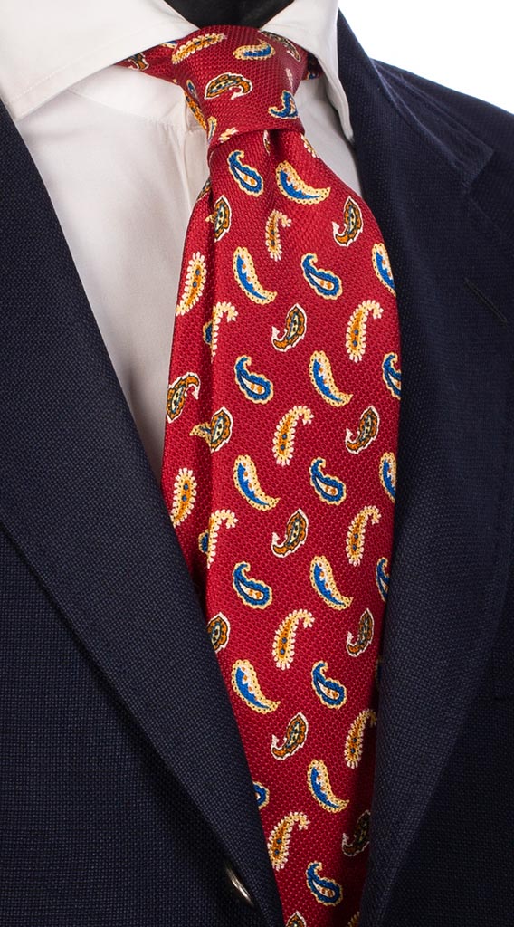 Cravatta di Seta Stampa Rossa Paisley Multicolor 1344