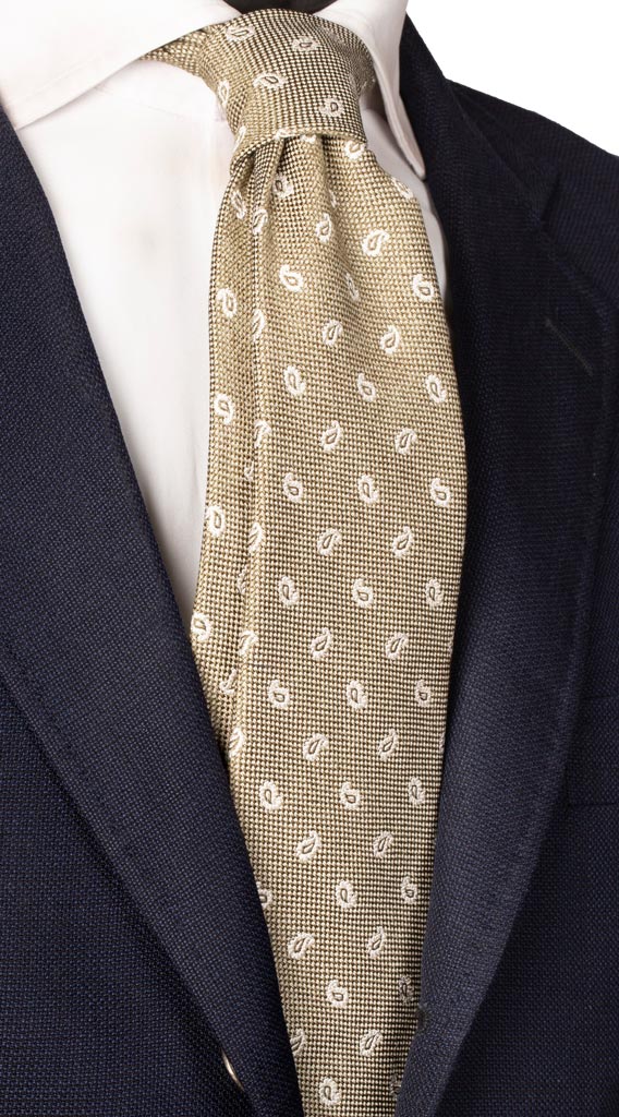 Cravatta di Seta Verde Chiaro Paisley Bianco 6456