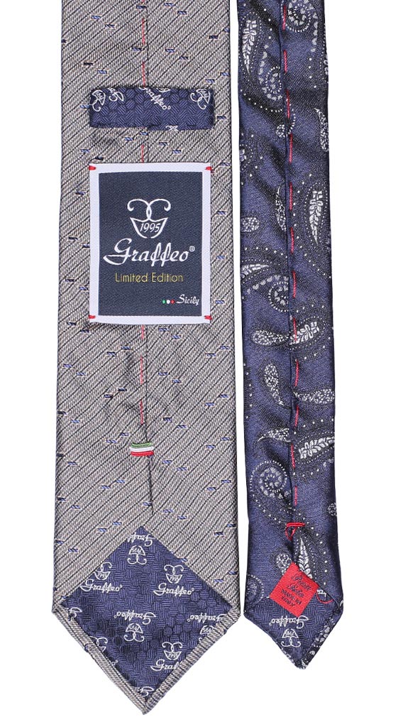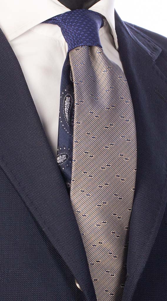 Cravatta Fantasia Grigio Beige Bluette Nodo in Contrasto Bluette Fantasia Tono su Tono N1851