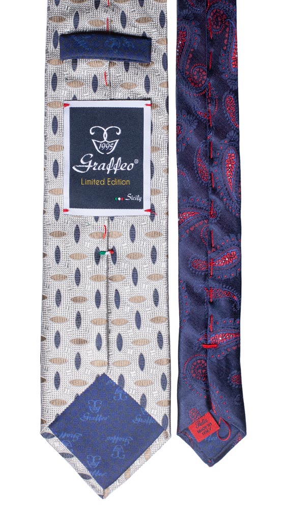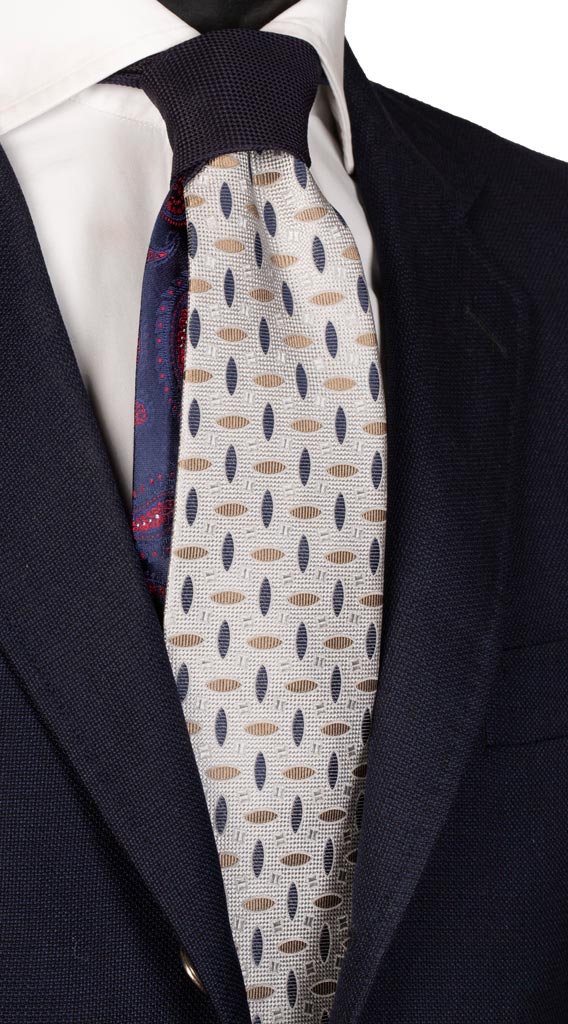 Cravatta Grigia Fantasia Blu Beige Nodo in Contrasto Blu N2439