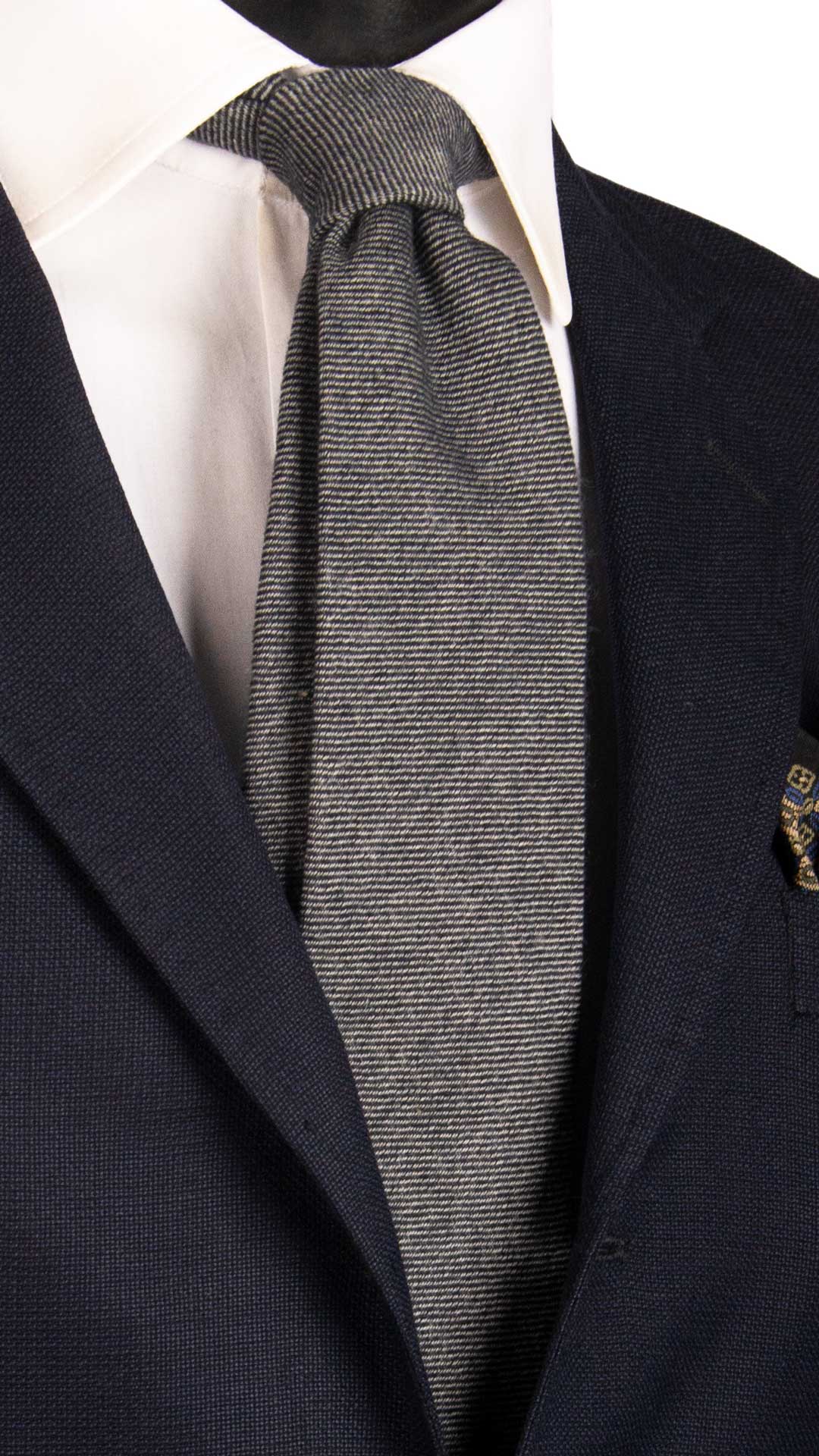 Cravatta in Lana Cashmere Grigio Scuro con Righe Nere L1172
