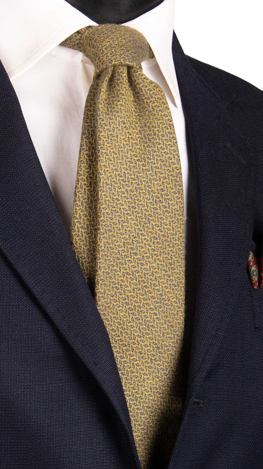 Cravatta in Lana Cashmere Verde Fantasia Blu Navy L1000