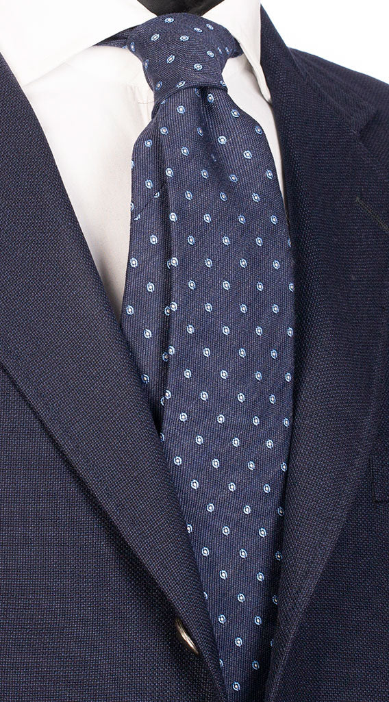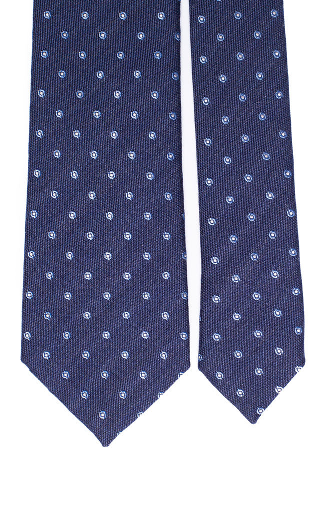 Cravatta in Lana Seta Blu Fantasia Celeste Bianco L380