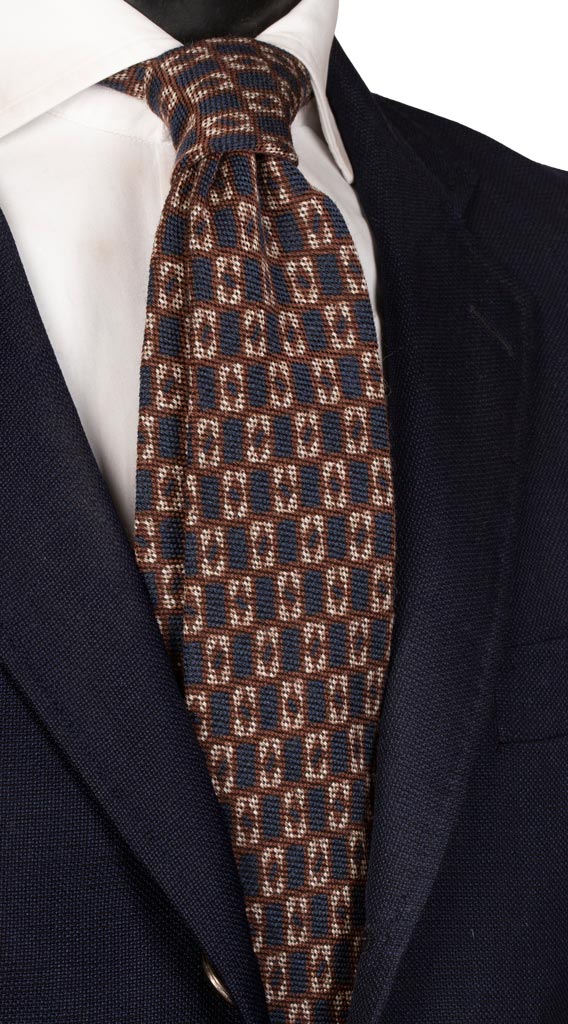 Cravatta in Lana Seta Blu Fantasia Marrone Beige L794