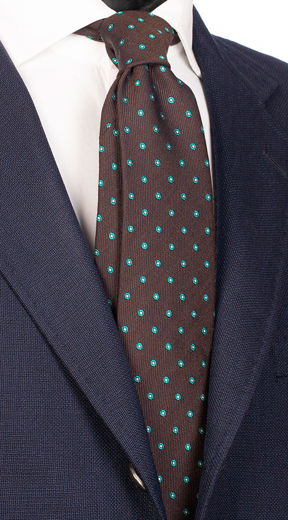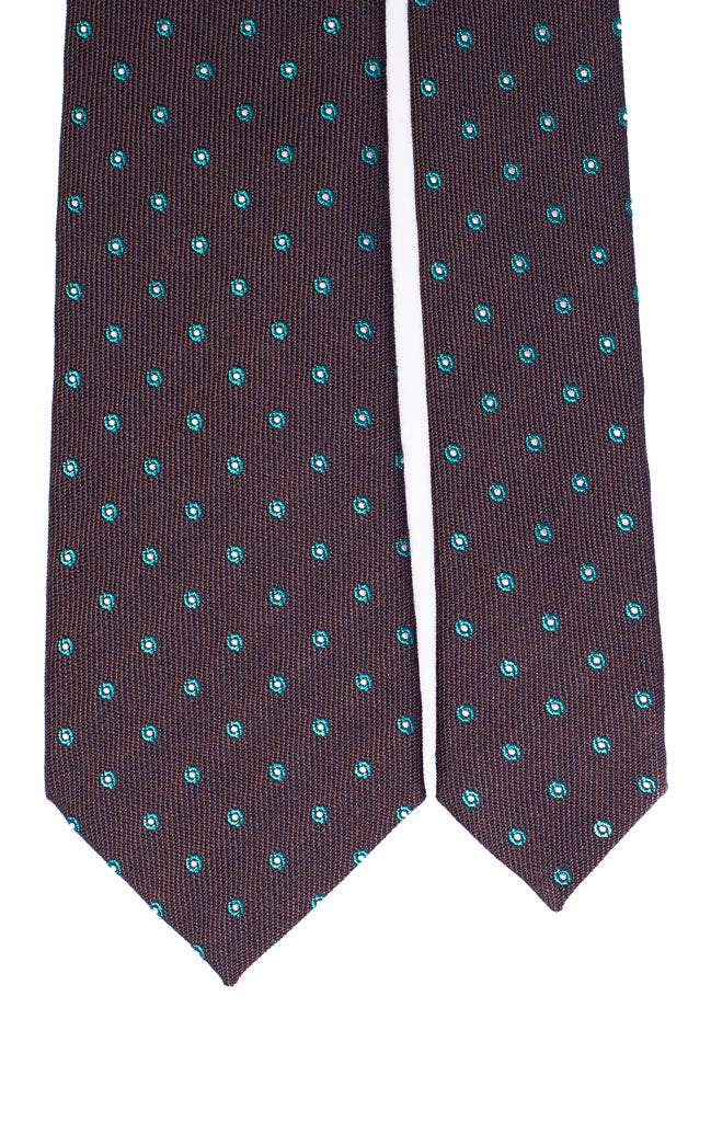 Cravatta in Lana Seta Marrone Fantasia Verde Bianca L372