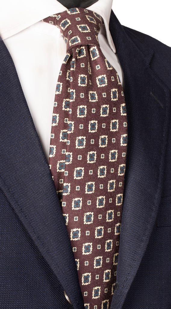 Cravatta in Lana Seta Vinaccia Fantasia Blu Avio Giallo Chiaro L767