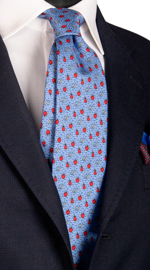 Cravatta Uomo Stampa di Seta Celeste con Animali 6745