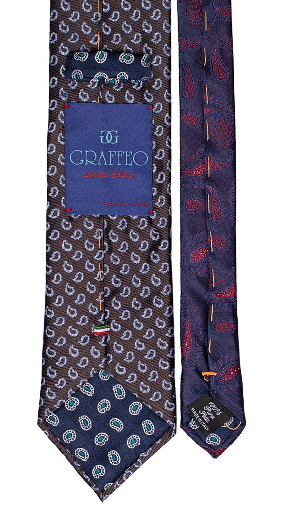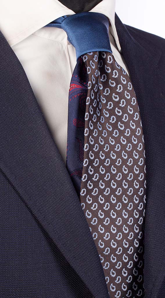 Cravatta Marrone Paisley Celeste Nodo in Contrasto Blu Avio Tinta Unita N755