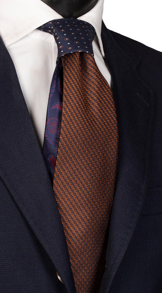 Cravatta Marrone Fantasia Blu Nodo in Contrasto Blu Marrone Bianco N2471