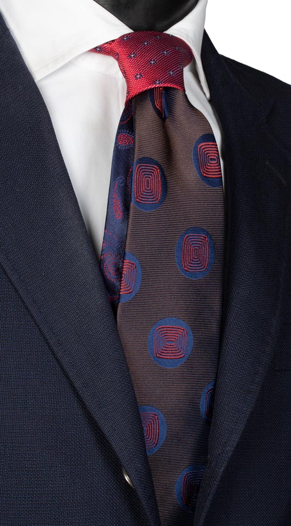 Cravatta Marrone Fantasia Ruggine Blu Nodo in Contrasto Rosso N2218