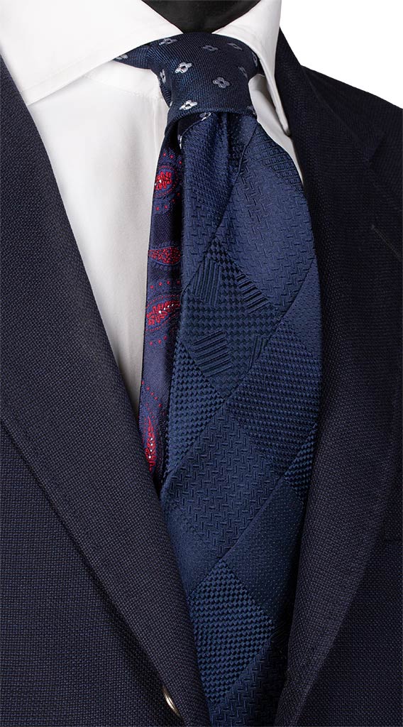Cravatta Mosaico Patchwork di Seta Blu Navy PM350