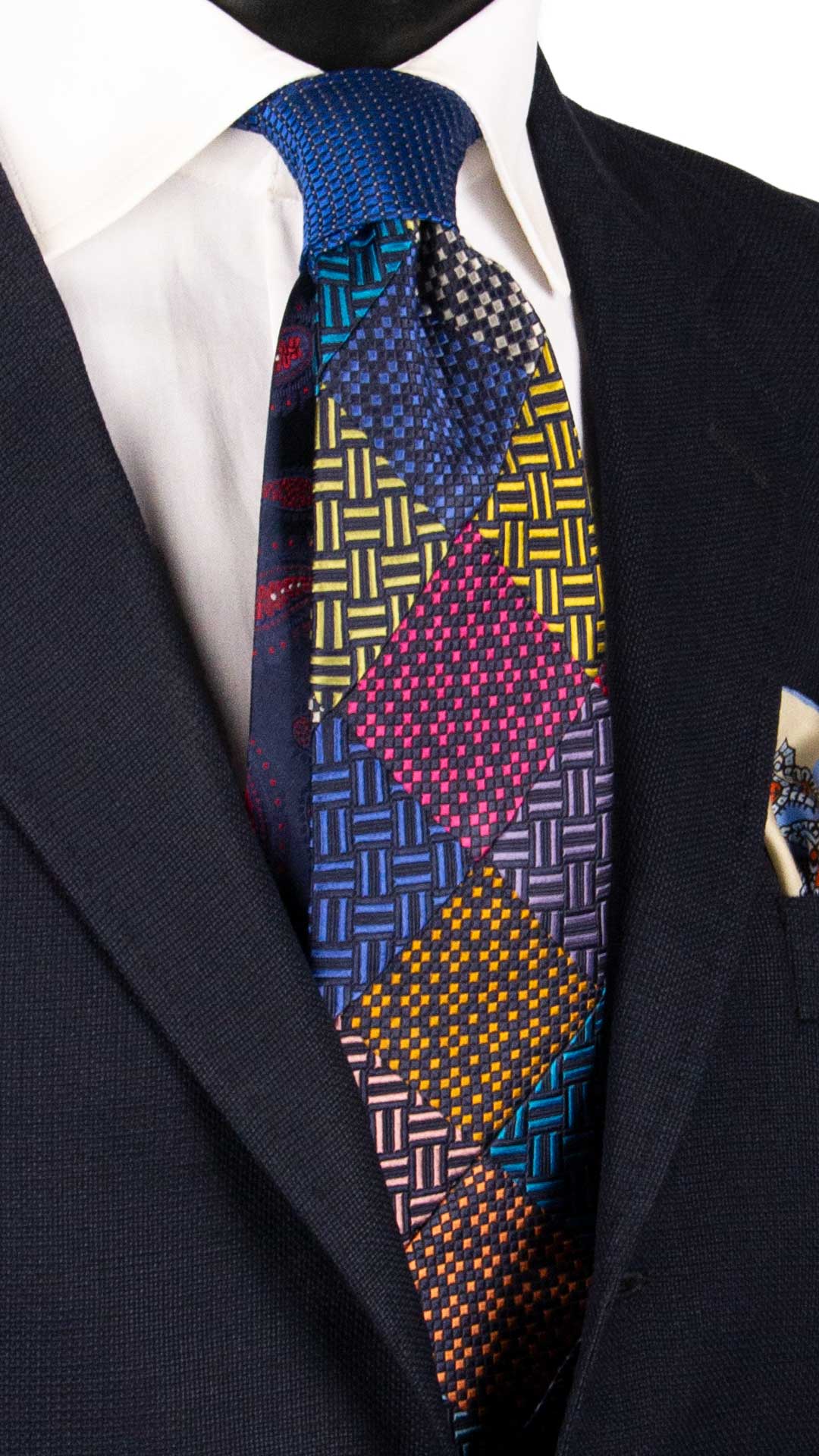Cravatta Mosaico Patchwork di Seta Fantasia Multicolor PM887