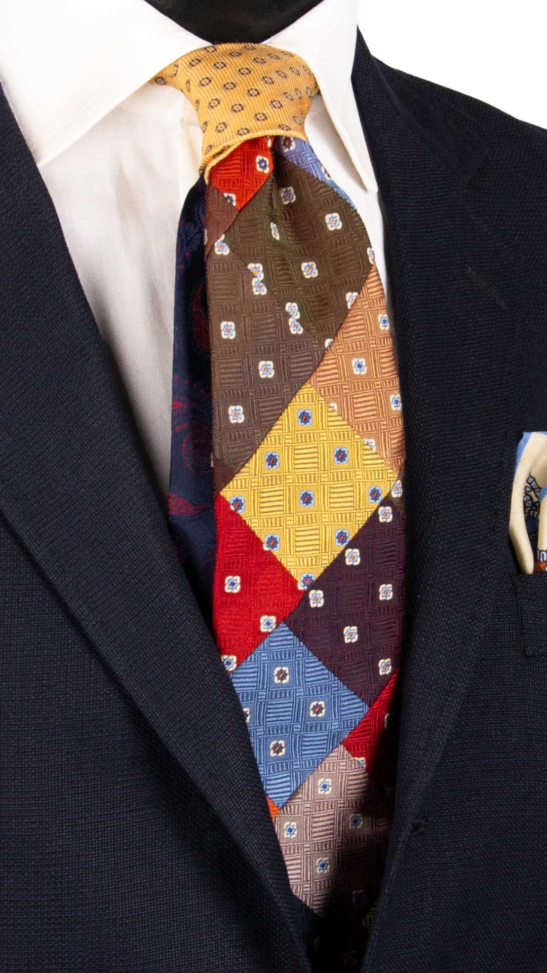 Cravatta Mosaico Patchwork di Seta Fantasia Multicolor PM948