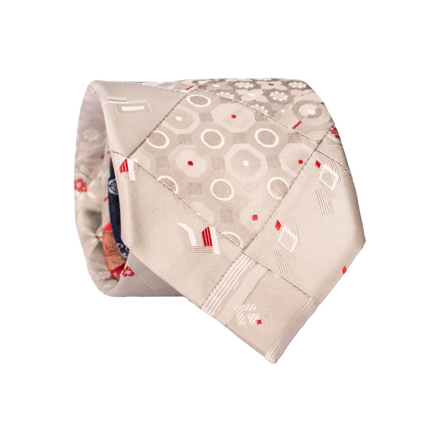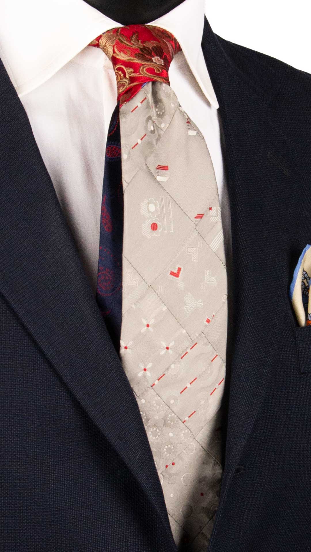 Cravatta Mosaico Patchwork di Seta Grigia Fantasia Rossa PM978