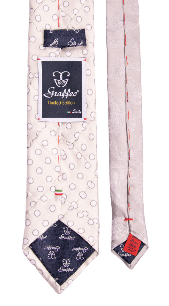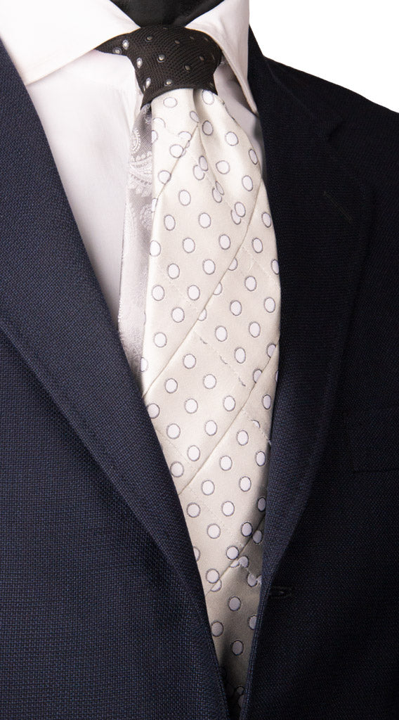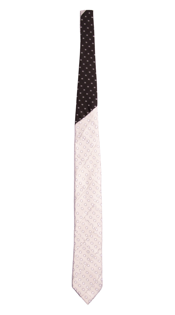 Cravatta Mosaico Patchwork di Seta Grigio Perla Nera Fantasia PM534