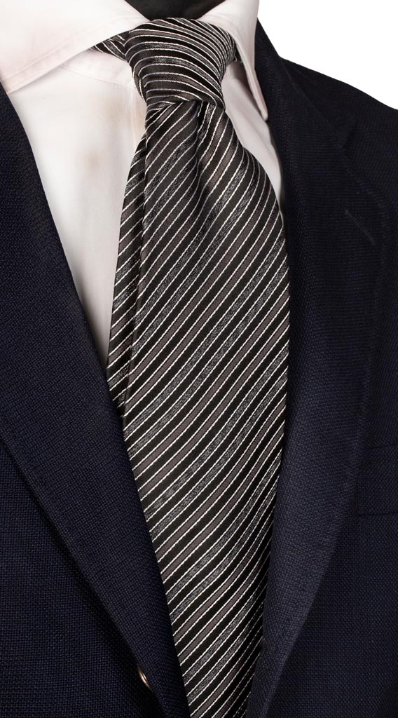 Cravatta Regimental da Cerimonia Righe Nera Grigio scuro Bianca CY902