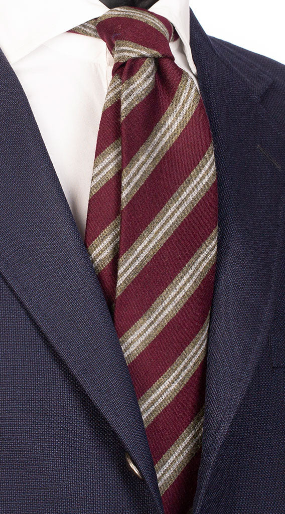 Cravatta Regimental di Lana Bordeaux Verde Grigia L697