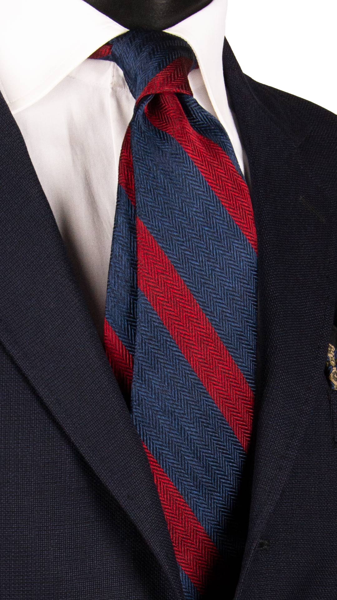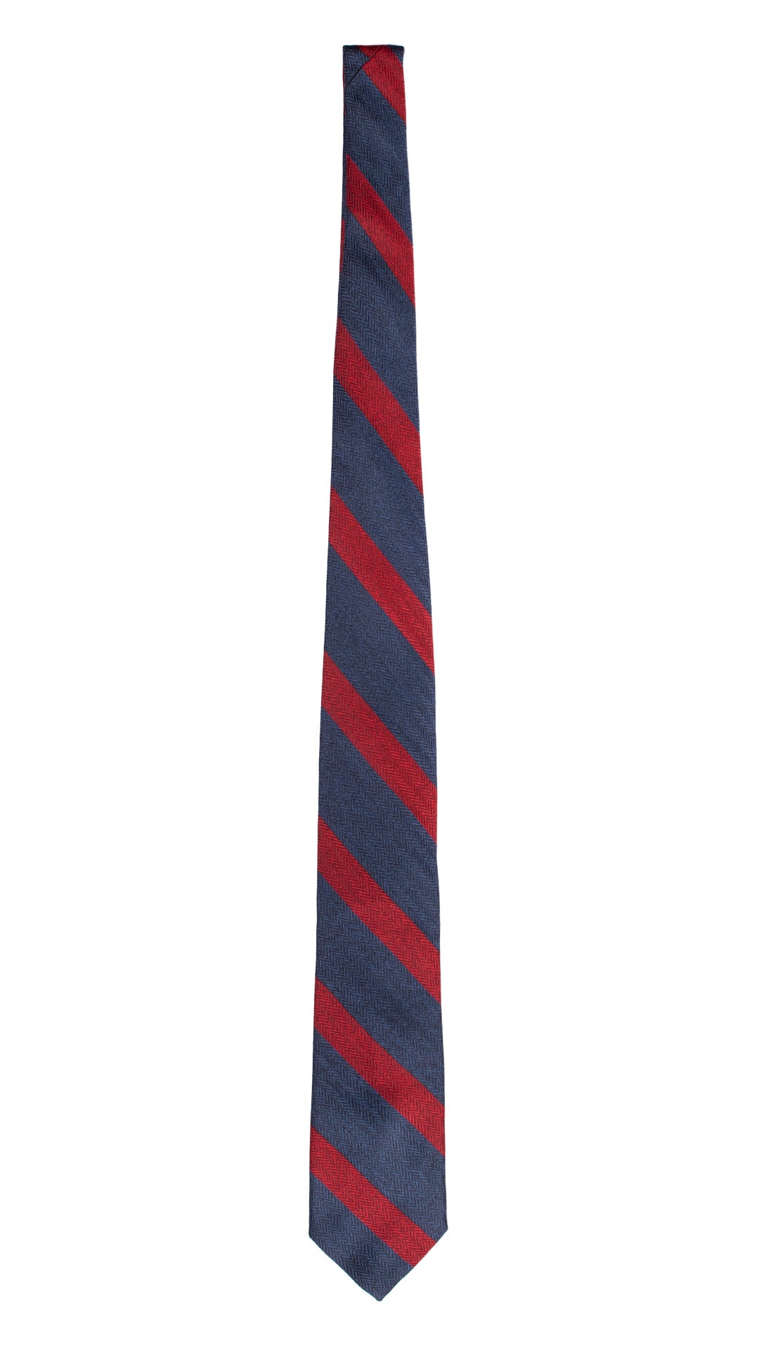 Cravatta Regimental di Seta Fantasia Lisca di Pesce Blu Rosso 7119