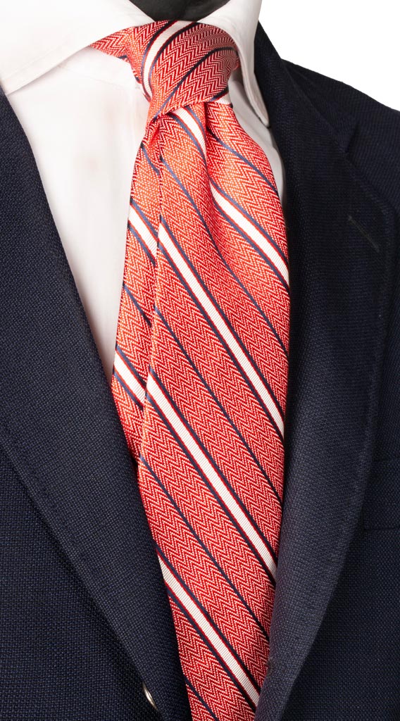 Cravatta Regimental di Seta Fantasia Lisca di Pesce Rossa Bianca Blu 6426