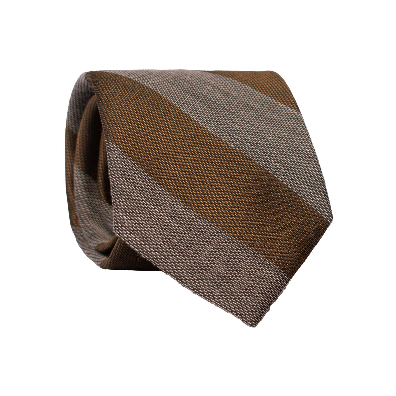 Cravatta Regimental di Seta Verde Oliva Grigia Effetto Lino 7071