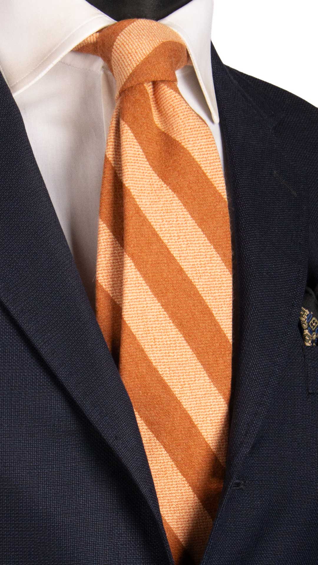 Cravatta Regimental in Lana Cashmere con Righe Arancione Chiaro Ruggine L1138
