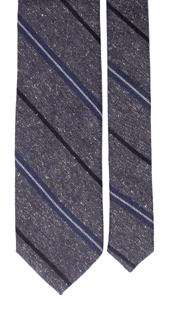 Cravatta Regimental in Lana Seta Grigia effetto Tweed Righe Blu Bianche L889
