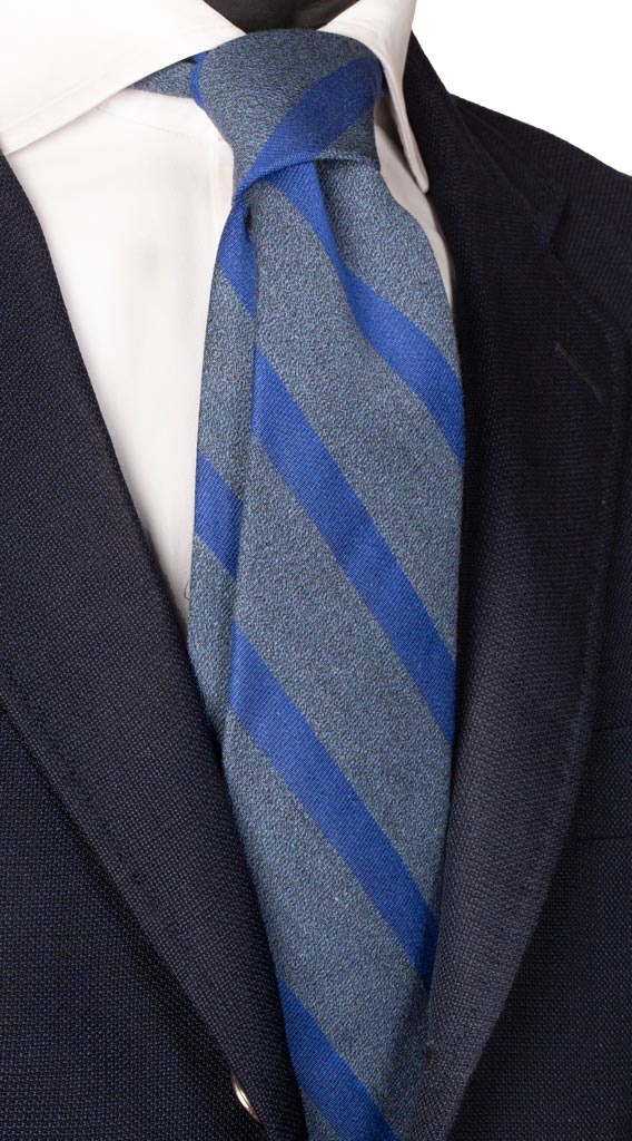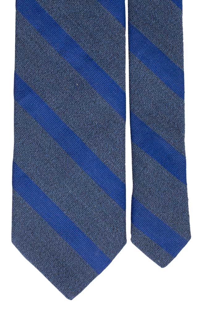 Cravatta Regimental in Seta Cotone Blu Navy Effetto Jeans Righe Bluette 6440
