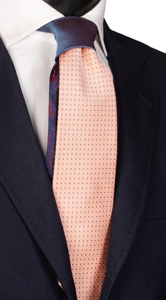 Cravatta Rosa Fantasia Celeste Nodo in Contrasto Celeste Blu N2527