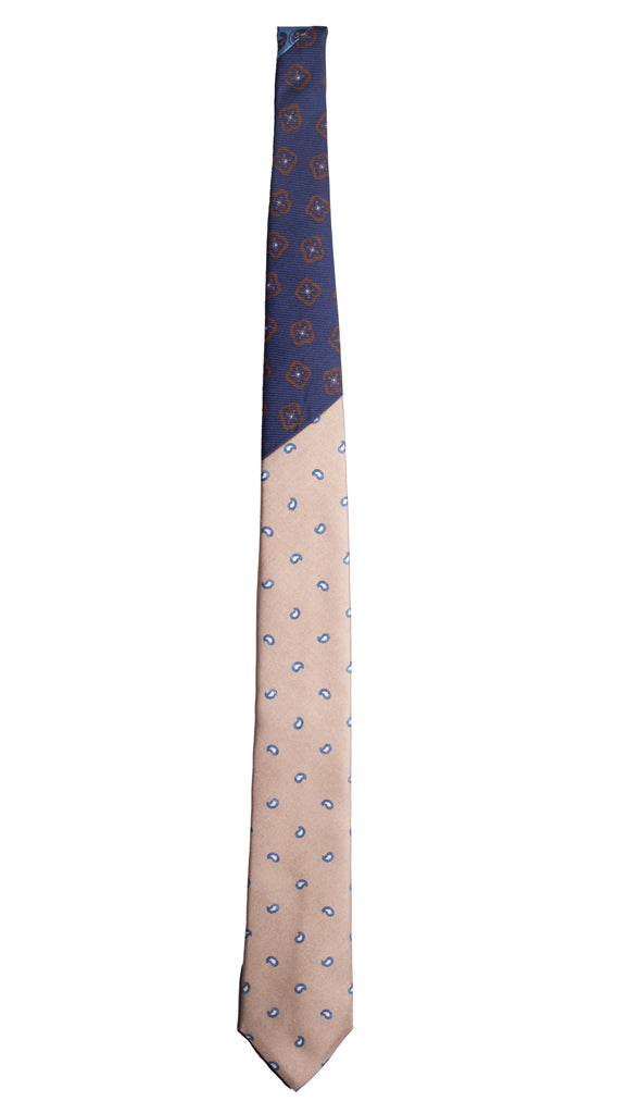 Cravatta Stampa Beige Paisley Blu Bianco Nodo in Contrasto Blu Fantasia N2699