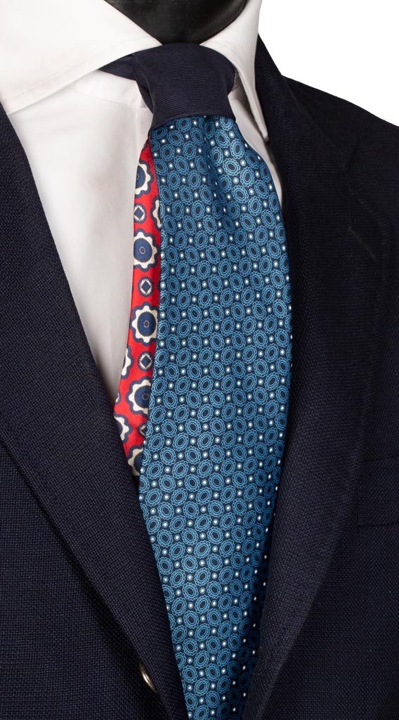 Cravatta Stampa Blu Fantasia Celeste Bianca Nodo in Contrasto Blu N2561
