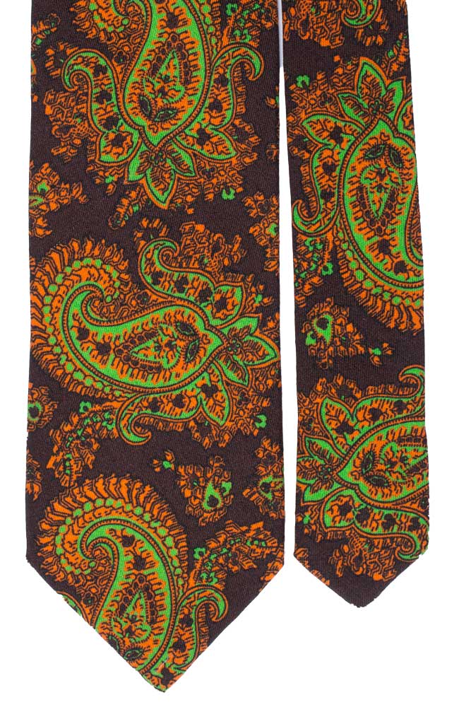 Cravatta Stampa di Lana Marrone Paisley Arancione Verde L763