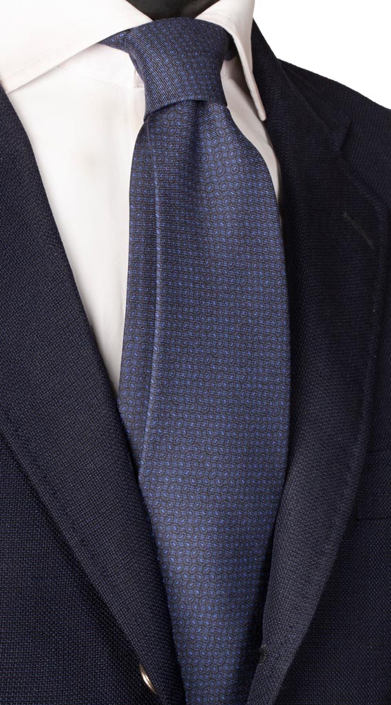 Cravatta Stampa di Seta Blu Navy Fantasia Blu 6348