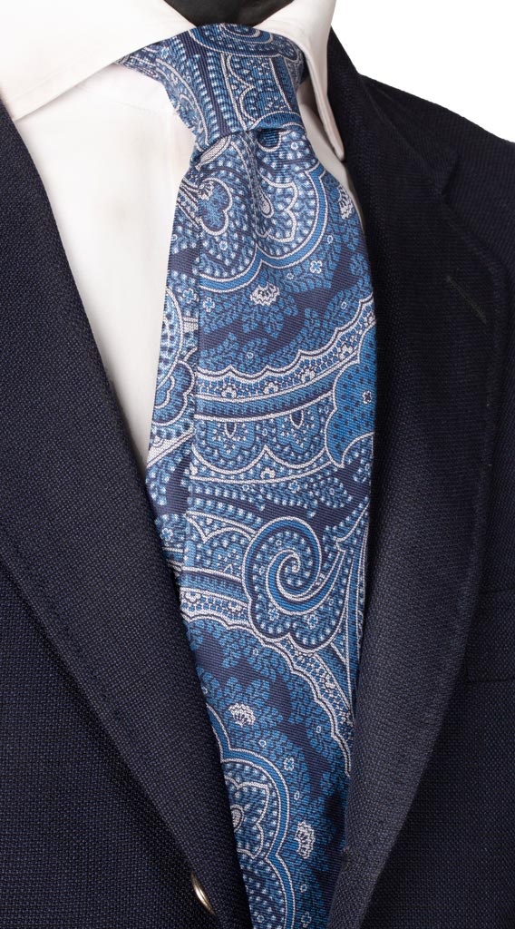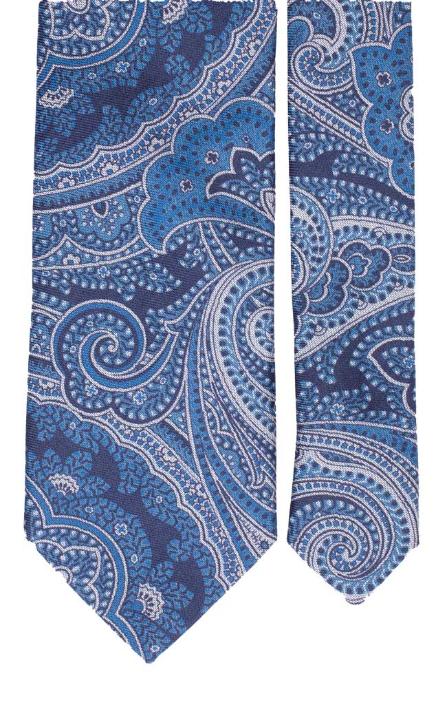 Cravatta Stampa in Seta Cotone Blu Paisley Bluette Bianco 6357