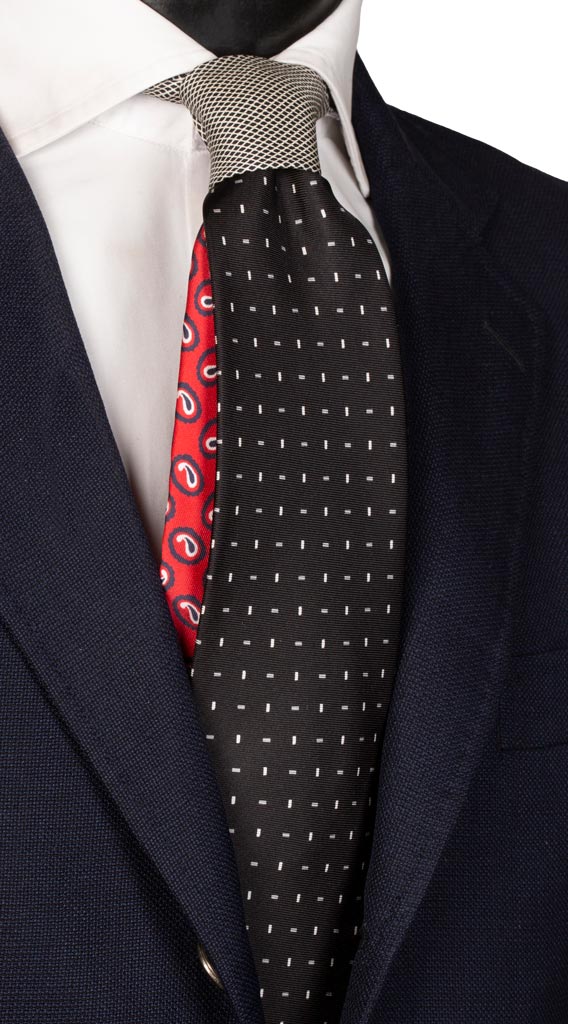 Cravatta Stampa Nera Fantasia Bianca Grigia Nodo in Contrasto Bianco Nero N2508