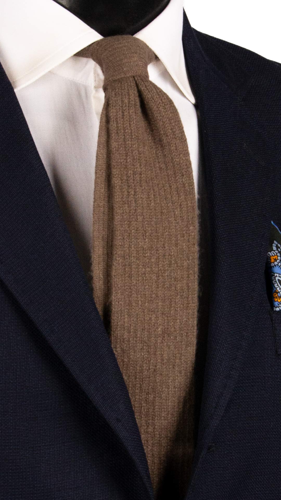 Cravatta Tricot in Maglia di Cashmere Tortora Tinta Unita TRI501