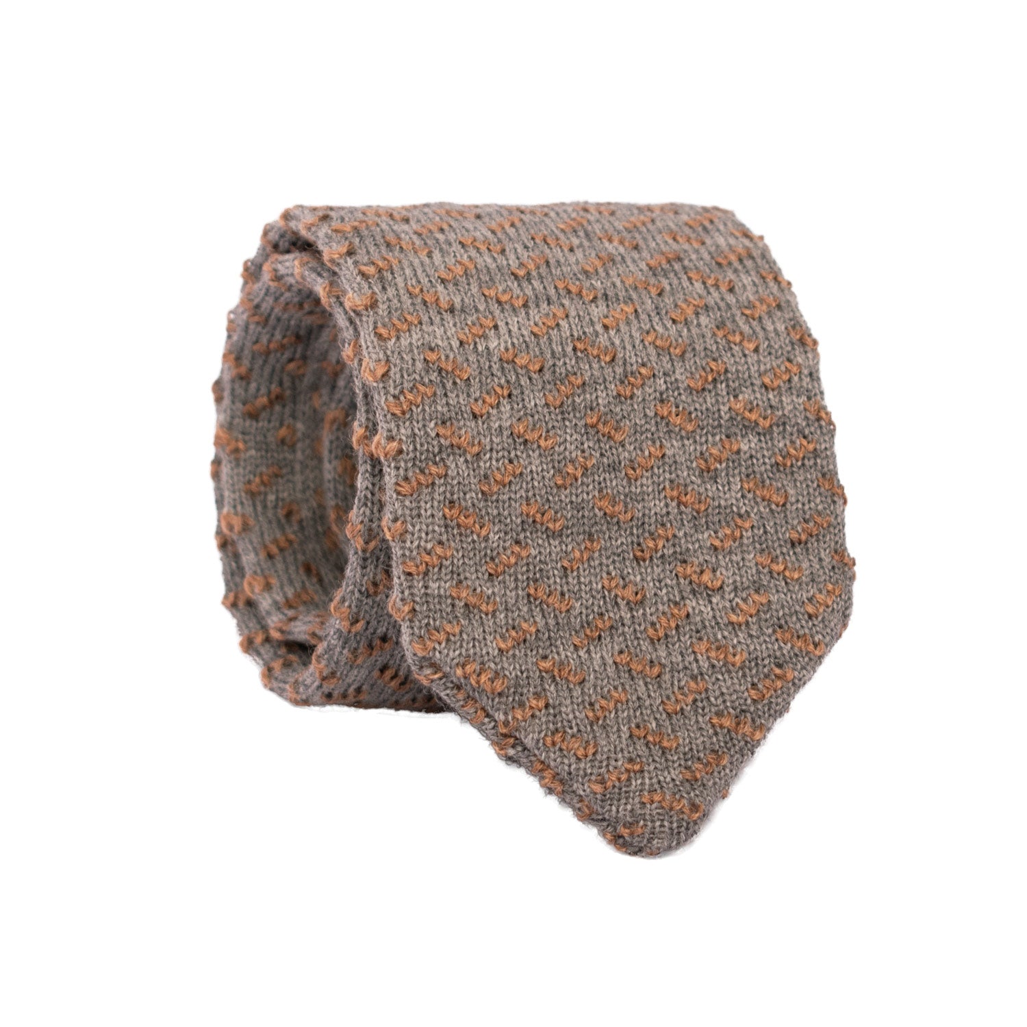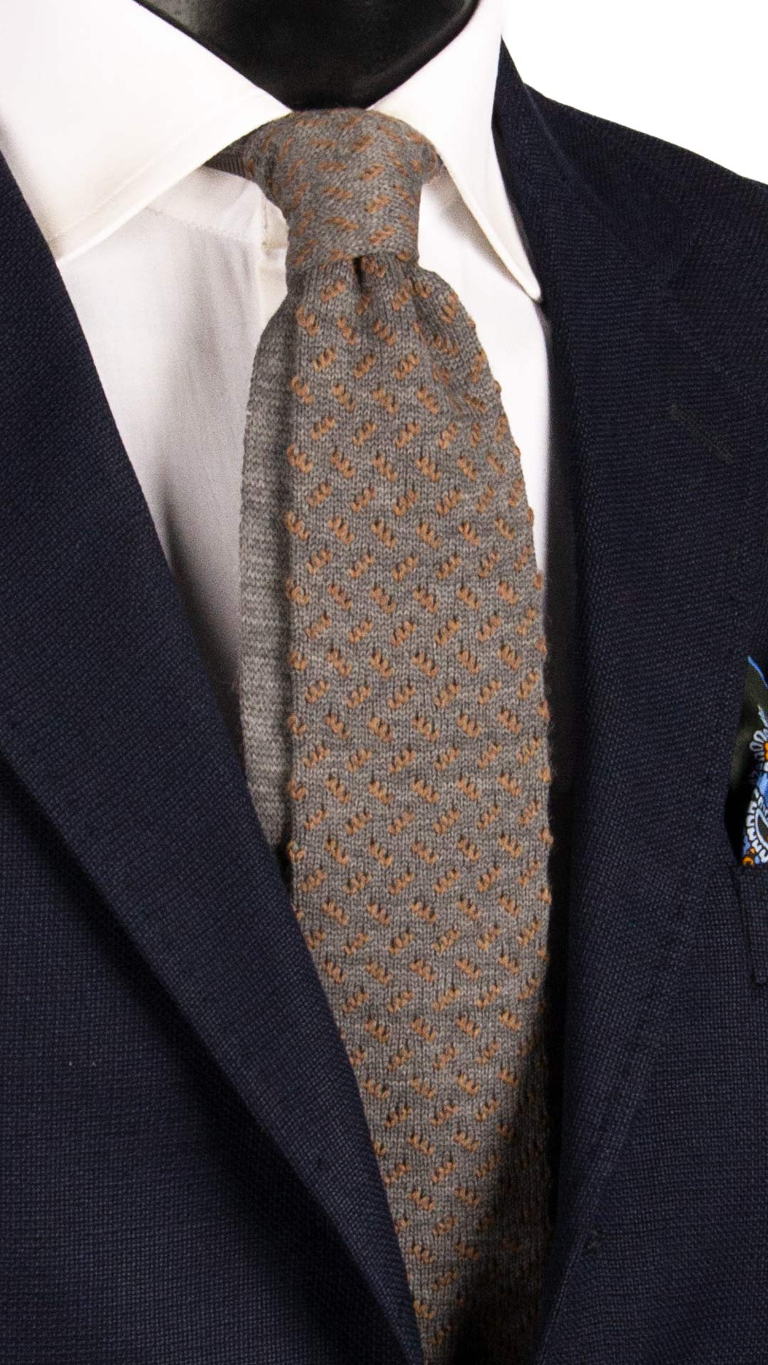 Cravatta Tricot in Maglia di Lana Grigia Fantasia Marrone TRI592