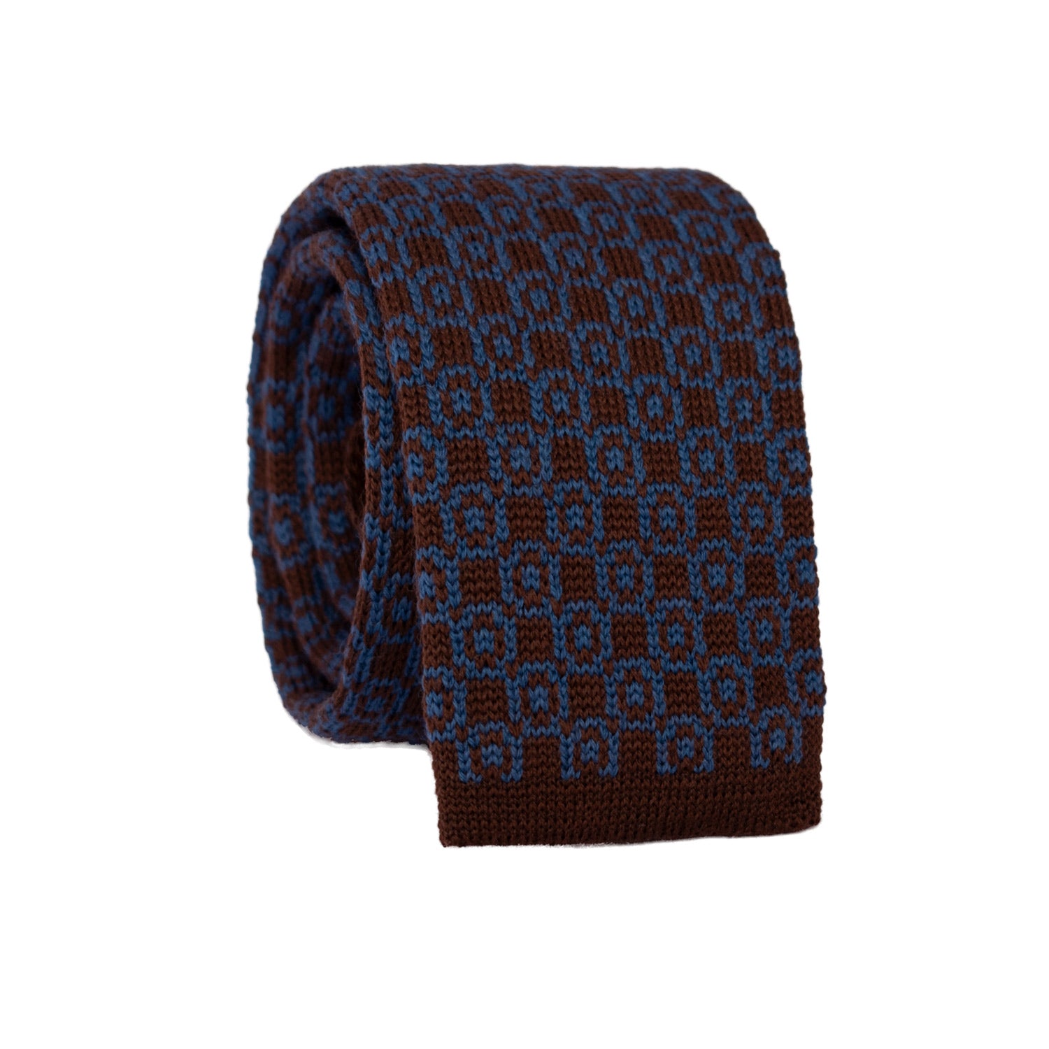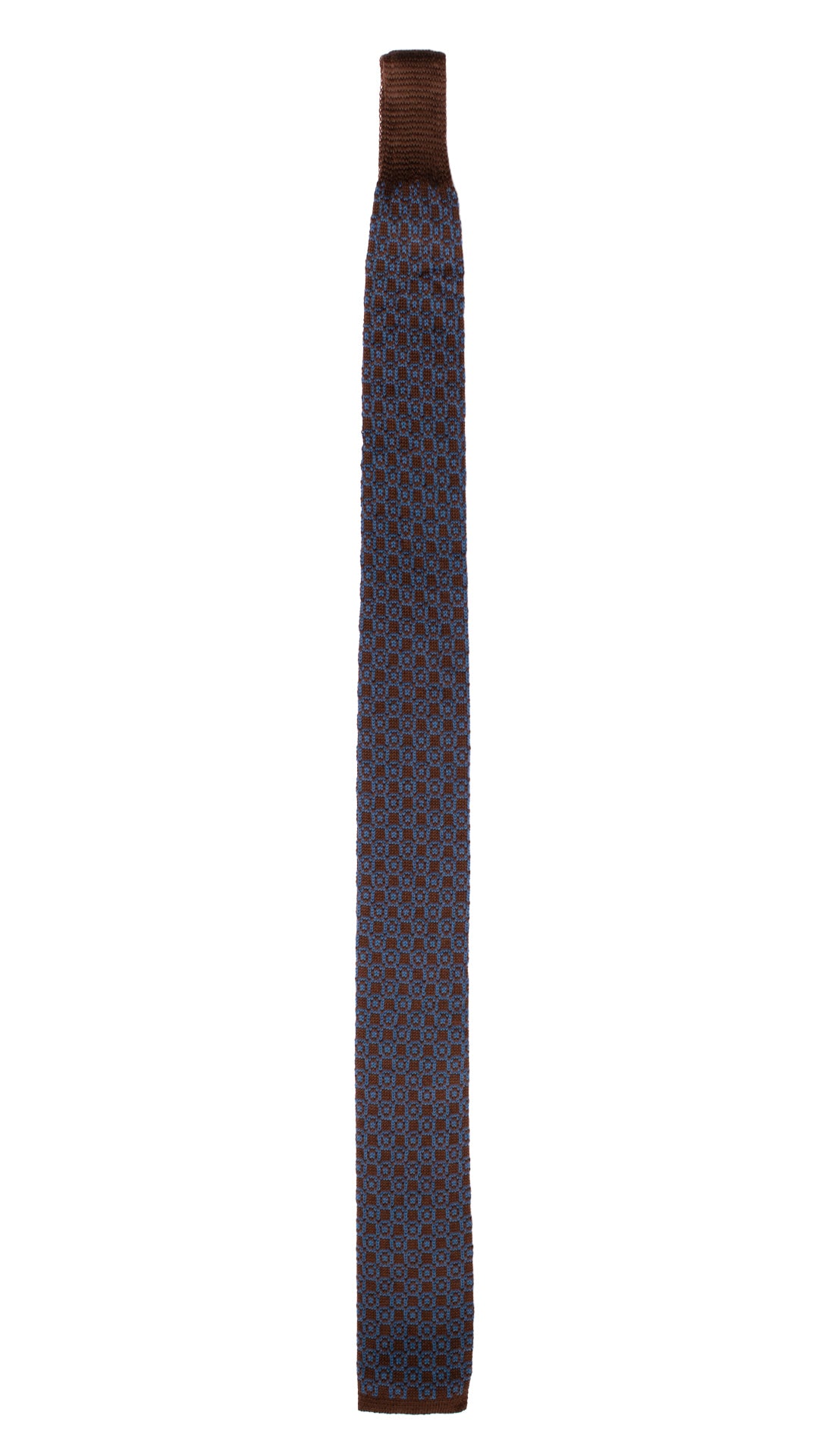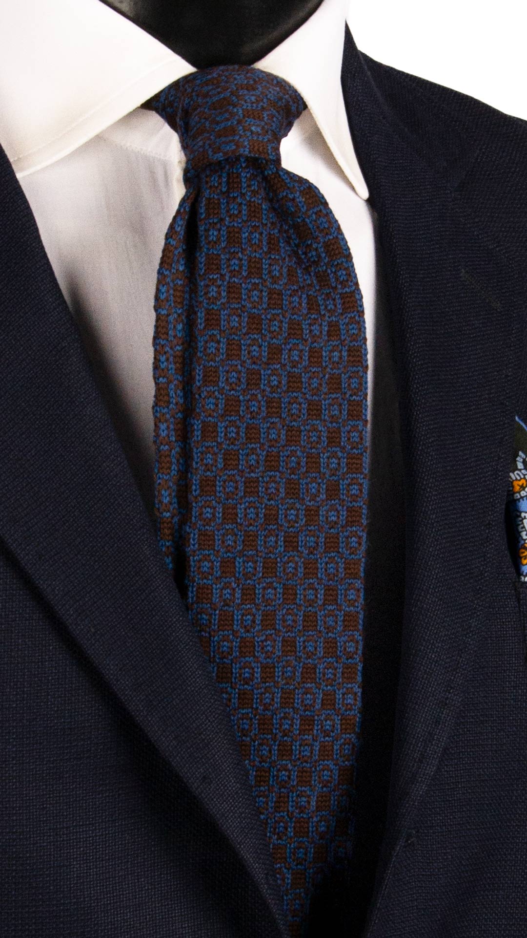 Cravatta Tricot in Maglia di Lana Marrone Fantasia Bluette TRI496