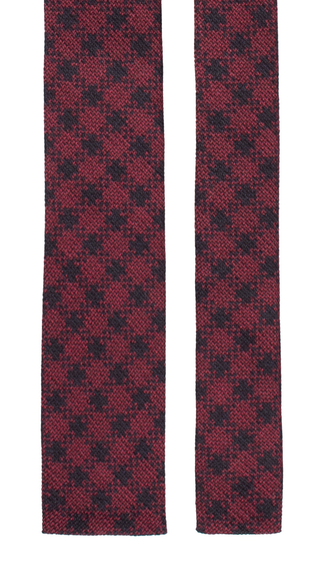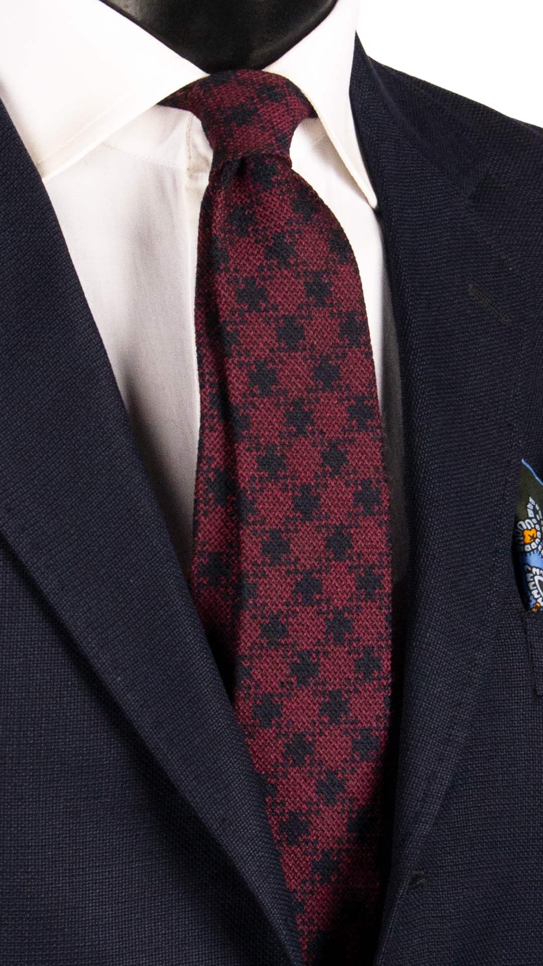 Cravatta Tricot in Maglia di Lana Seta Borgogna Fantasia Blu TRI574